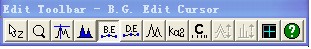 该窗口用于设置扣除背景时的参数,一般选择默认值直接选择apply,回到主窗口,此时软件自动运行Edit bar/B.E按钮,用于手动修改背景,Edit bar工具栏如下: