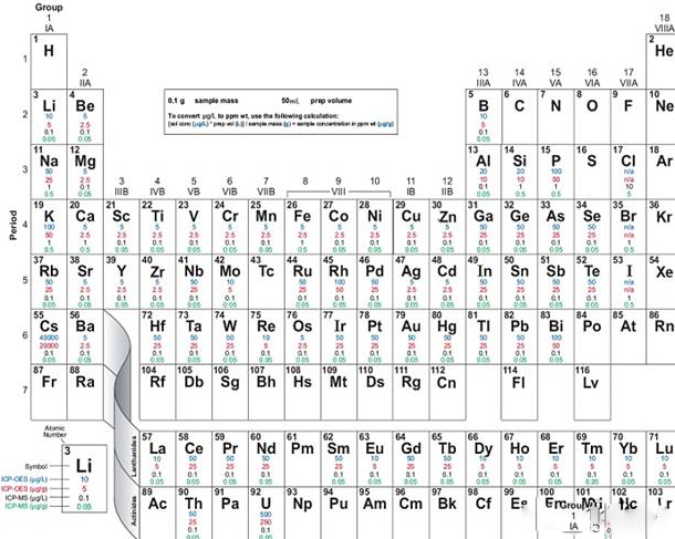 用于微量元素分析和有害物质检测,不同元素最低检测限是不同的,见图7。