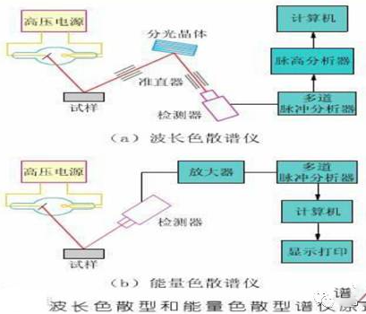 原理:用X射线照射试样时,试样可以被激发出各种波长的荧光X射线,需要把混合的X射线按波长(或能量)分开,分别测量不同波长(或能量)的X射线强度,以进行定性和定量分析。